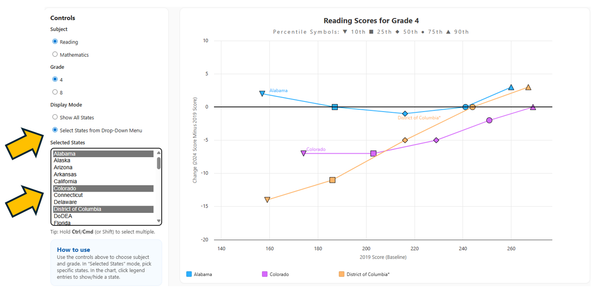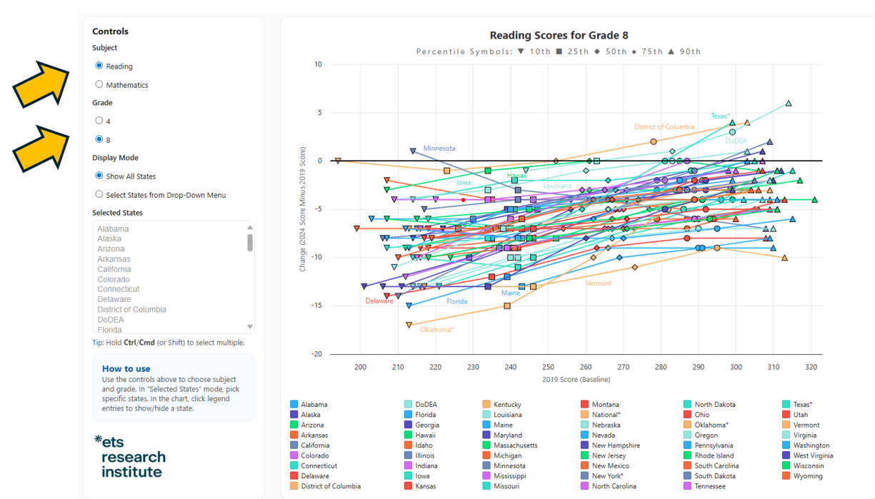 Introducing a new interactive display to understand states’ NAEP score changes for higher- and lower-scoring students